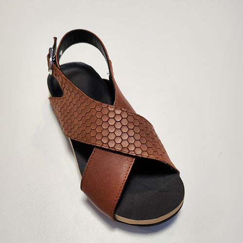 Een sandaal met gekruisde banden en een band om de hiel.
